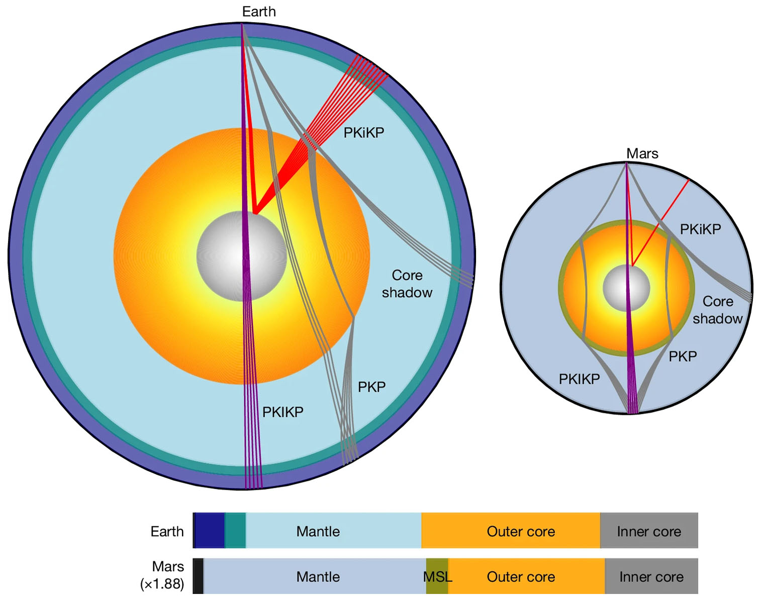 Con los tiempos de viaje de estas fases, además, pudieron reconstruir la estructura del núcleo, resultando en que Marte tendría uno de unos 613 kilómetros, proporcionalmente similar al de nuestro planeta -con relación al tamaño- ya que aquí la proporción es de aproximadamente un tercio del tamaño total del núcleo, muy parecido al del planeta Rojo.
