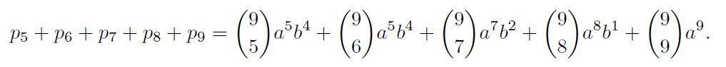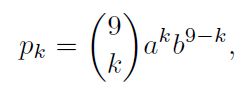 que involucra un coeficiente binomial (cantidad de subconjuntos de k elementos escogidos de un conjunto de 9 elementos).