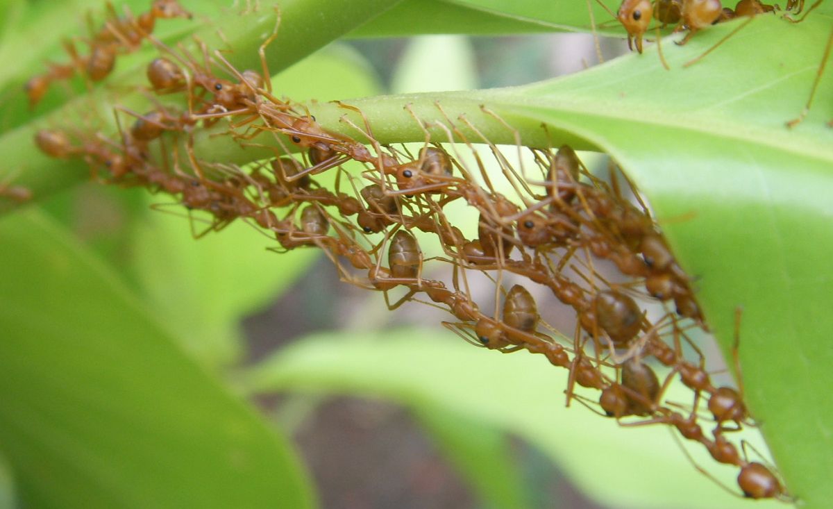 Las hormigas tejedoras (genero Oecophylla) viven en los árboles y se agrupan en gigantescas colonias que pueden agrupar a «más de cien nidos con más de medio millón de obreras». Semejante fuerza de trabajo representa todo un desafío para el «Efecto Ringelmann» y, sin embargo, a diferencia de los humanos, estas pequeñas hormigas consiguen volverse más eficientes cuando trabajan juntas.