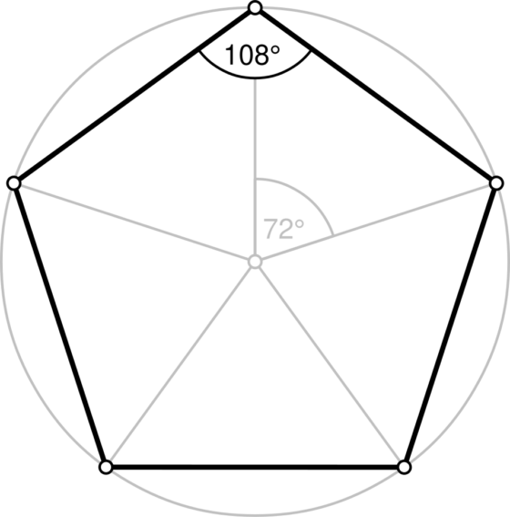 Los ángulos interiores del pentágono regular miden 108 grados