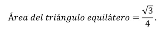 Por lo tanto, vamos a calcular el área de dos figuras geométricas implicadas en este problema, el triángulo equilátero y el sector circular (compuesto este de un triángulo equilátero y un segmento circular). Por una parte, el área del triángulo equilátero, como para cualquier otro triángulo, es la mitad de la base por la altura. De nuevo, si la distancia entre los centros de las circunferencias, que es el lado del triángulo equilátero, es la unidad (1), entonces la altura -por el teorema de Pitágoras- es igual a la mitad de la raíz de tres, como se mostró en la anterior entrada. En consecuencia, el área del triángulo equilátero es igual a la cuarta parte de la raíz de tres: