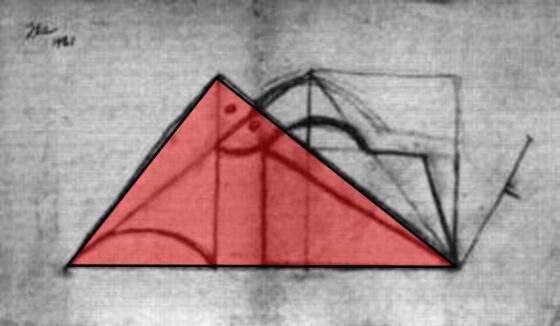 Esquema de un segundo triángulo (rectángulo) de Kepler sobre el boceto de para su escultura Magdalena arrepentida (1921), de Jacques Lipchitz