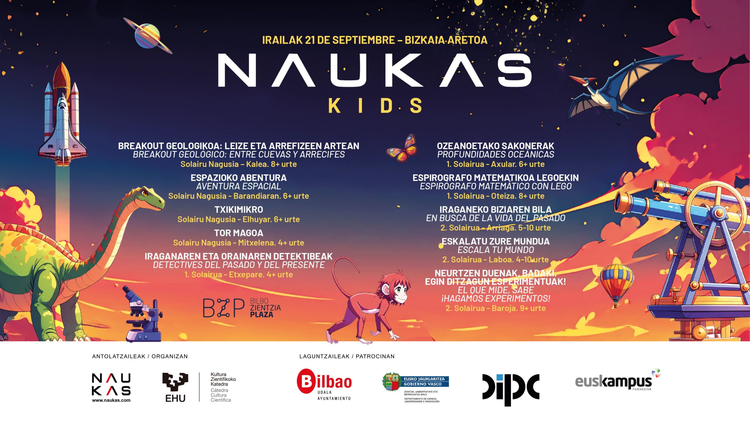 El domingo 21 de septiembre, los más pequeños podrán disfrutar con dos espectáculos y ocho talleres en el Bizkaia Aretoa-EHU de Bilbao. Quienes acudan tendrán la oportunidad de vivir un espectáculo en el que la ciencia y la magia se hacen uno, crear su propio planeta, explorar las profundidades marinas o aprender trucos para la vida mediante experimentos caseros.